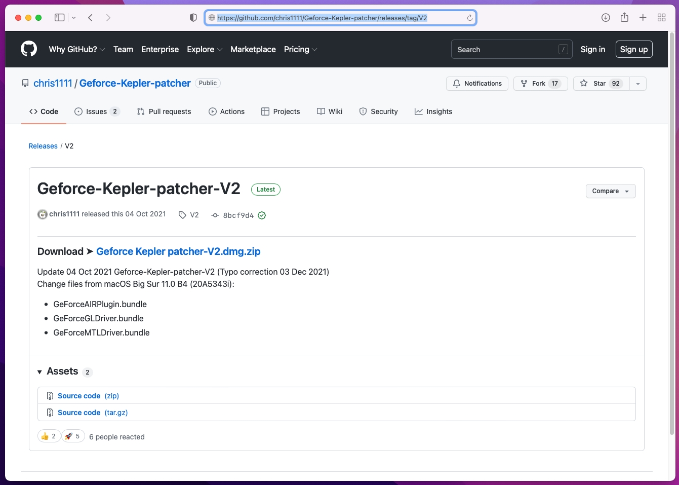 Step 1Visit https://github.com/chris1111/Geforce-Kepler-patcher/releases/tag/V2 website and download Geforce.Kepler.patcher-V2.dmg.zip file.