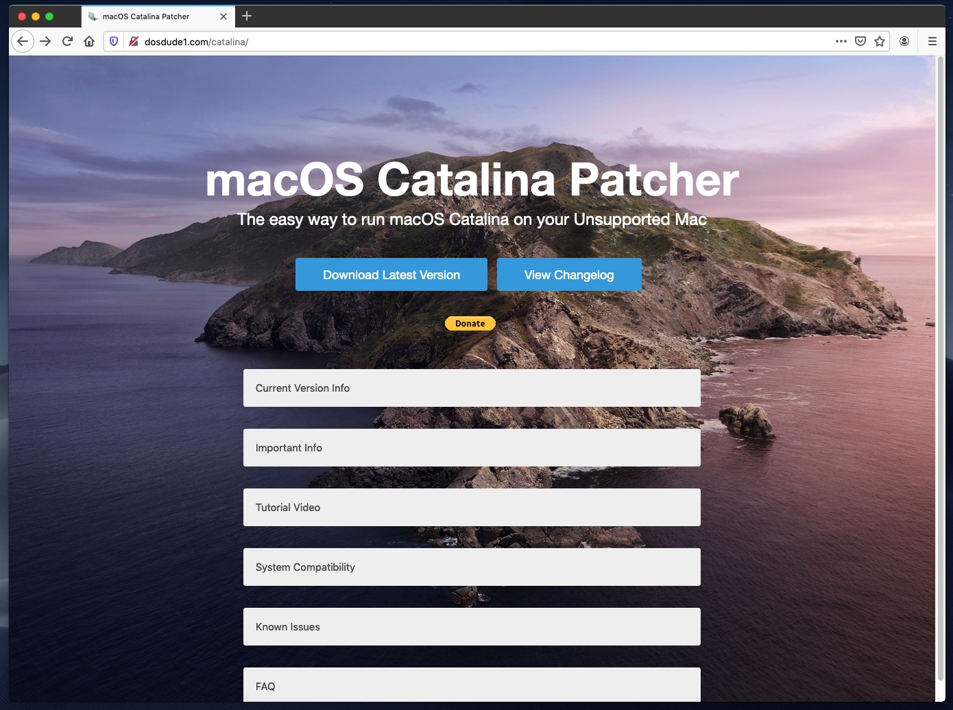 Step 1First you need to download DosDude Catalina patcher from https://dosdude1.com/catalina website by clicking Download Latest Version button. |
