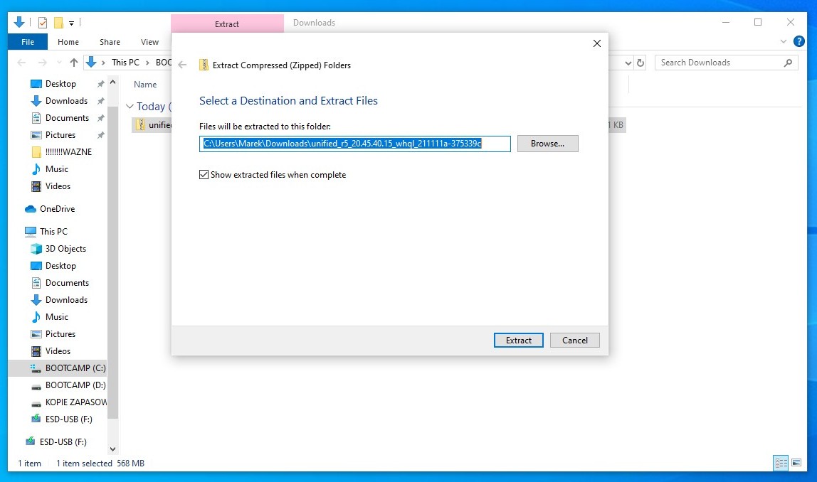 Step 56File will be extracted into Unified_R5_20.45.40.15_WHQL_211111a-375339C folder. However, due to some error inside the installer the driver can't be installed in a normal way. |