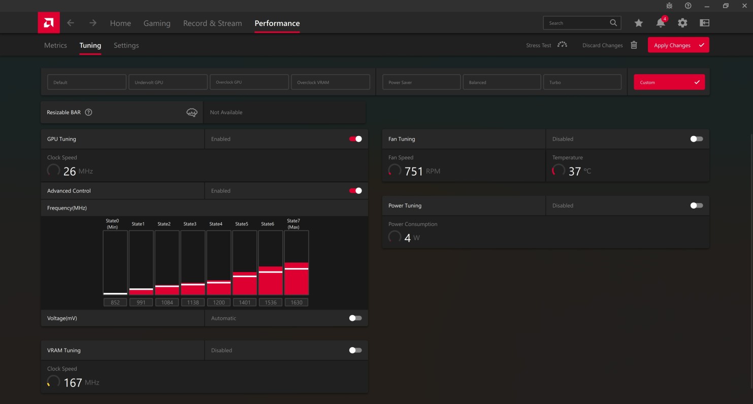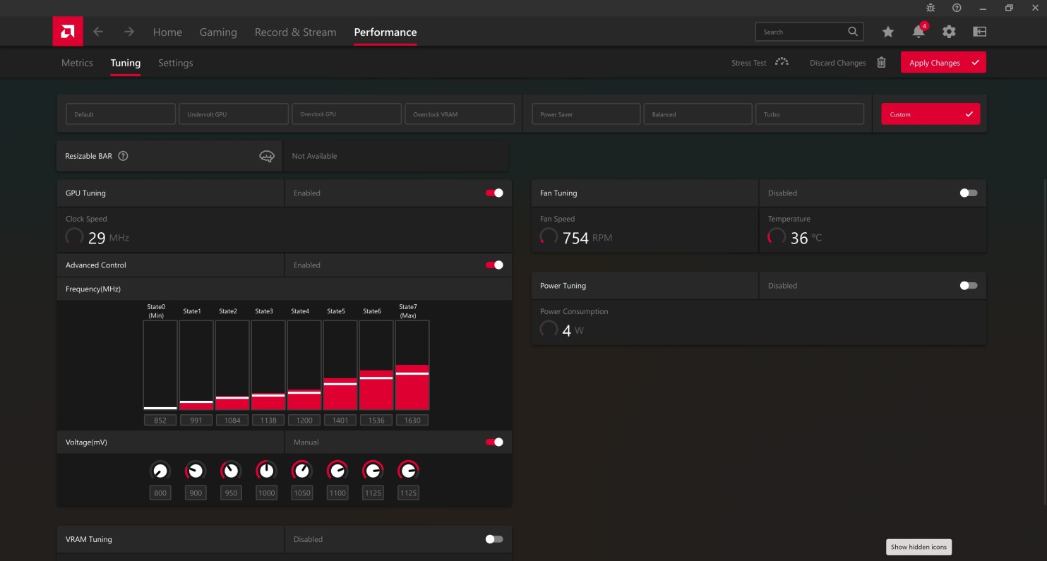 Step 11Change voltage for State6 from 1150 mV to 1125 mV. Change voltage for State7(Max) from 1200 mV to 1125 mV. Finally, click Apply Changes button to finish. |